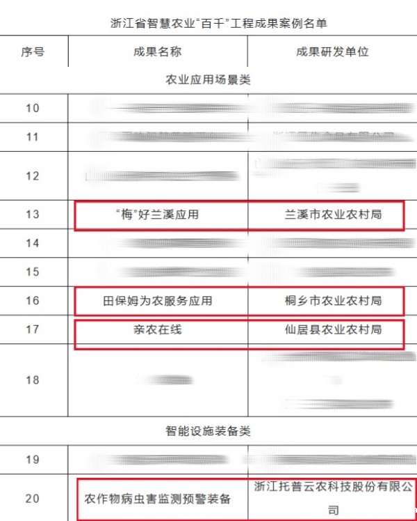近日,浙江省农业农村厅公布了2023年度浙江省智慧农业“百千”工程成果案例。其中,由taptap国际版怎么登陆(下称“点点电脑”)自主研发的“农作物病虫害智慧测报系统”成功入选智慧设施装备类案例;点点电脑全资子公司——浙江森特技术支撑建设的“梅”好兰溪应用、田保姆为农服务应用、亲农在线成功入选农业应用场景类案例。