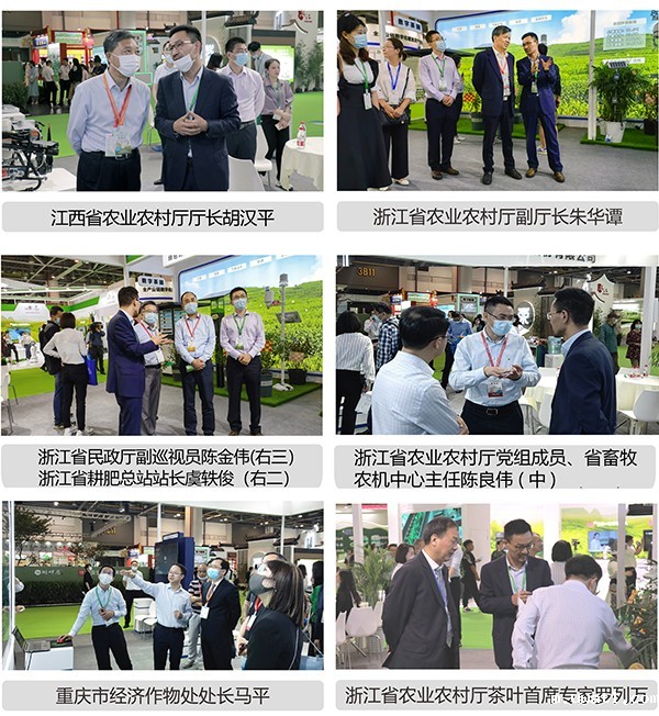浙江省省委常委、省军区司令员冯文平(左二);浙江省农业农村厅副厅长唐冬寿(左一);浙江省农业农村厅乡村产业与市场信息处副处长程兵(右二)参观点点电脑展位