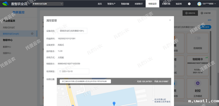 4、风吸式茶园杀虫灯支持手机App与Web端控制,具有丰富的状态信息展示,足不出户就可以了解一切,如地理位置、设备编号、基地名称、物联网卡卡号、剩余流量、卡有效期、GSM天线连接是否正常等故障报警信息。可远程控制、查看设备的当前工作状态、信号强度、电量使用等情况。