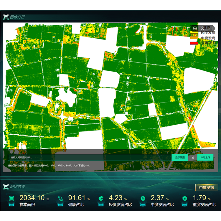 3.多光谱分析:集成多光谱相机,可进行植被指数、表型、病虫害等研究分析;